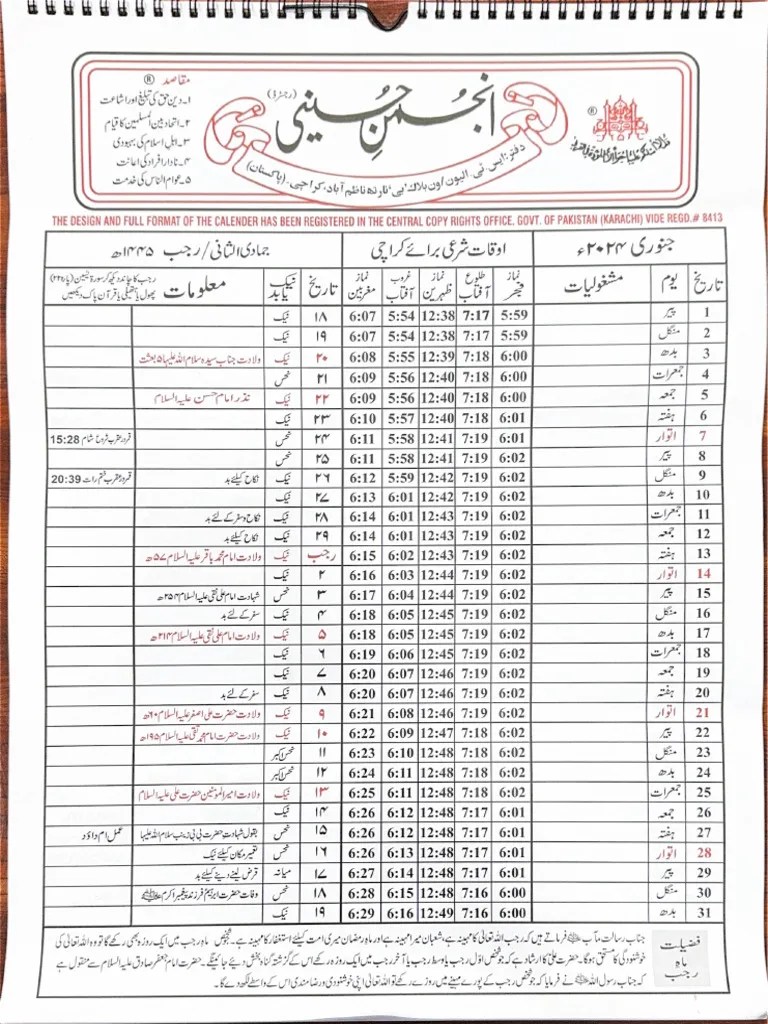 Shia Calendar 2024 Anjuman E Hussaini Layne Anestassia